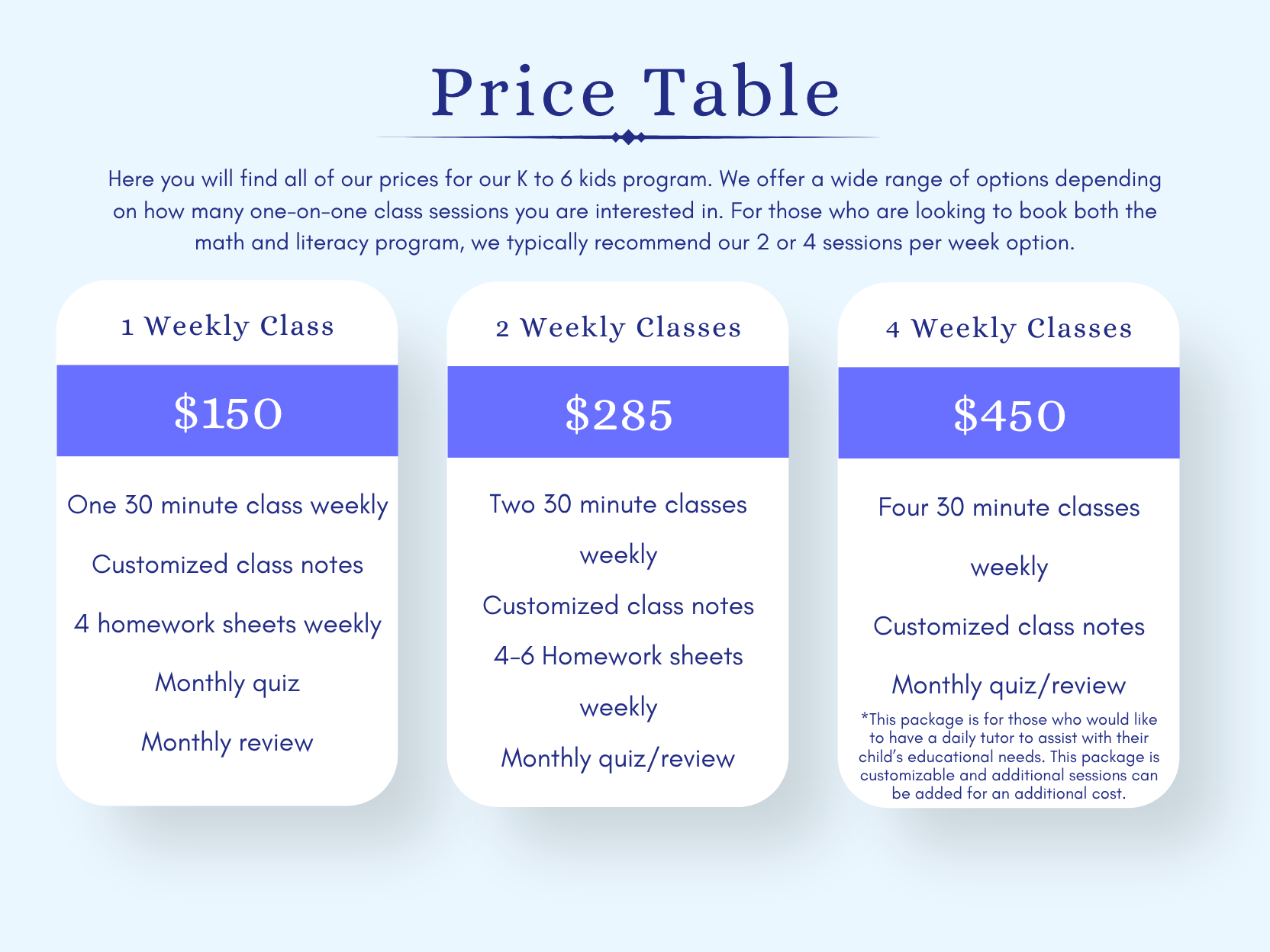 Thank you for your interest in our math and literacy programs and for entrusting us with your child’s educational needs.